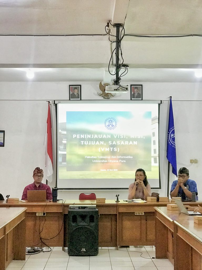 Badung, 22 Mei 2025 – Fakultas Teknologi dan Informatika (FTI) Universitas Dhyana Pura (Undhira) kembali menyelenggarakan kegiatan Peninjauan Visi, Misi, Tujuan, dan Sasaran Fakultas sebagai langkah lanjutan dari perubahan isi visi, misi, dan tujuan Universitas Dhyana Pura. Kegiatan ini merupakan peninjauan kedua yang dilakukan oleh FTI sebagai bentuk penyesuaian terhadap arah strategis universitas dan upaya untuk memastikan keselarasan pengembangan fakultas dengan kebutuhan dunia kerja dan masyarakat.